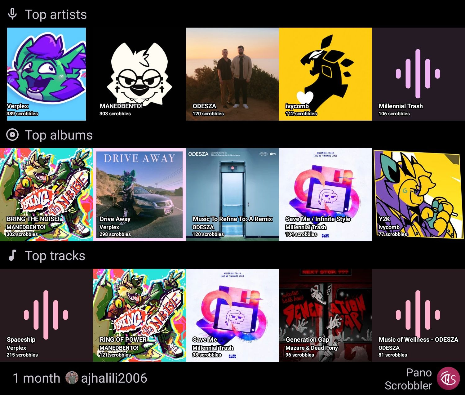 If you see my Instagram post over at my multifandom account, you might see my Last.fm listening stats via Pano Scrobbler for July 2025, like these below.
